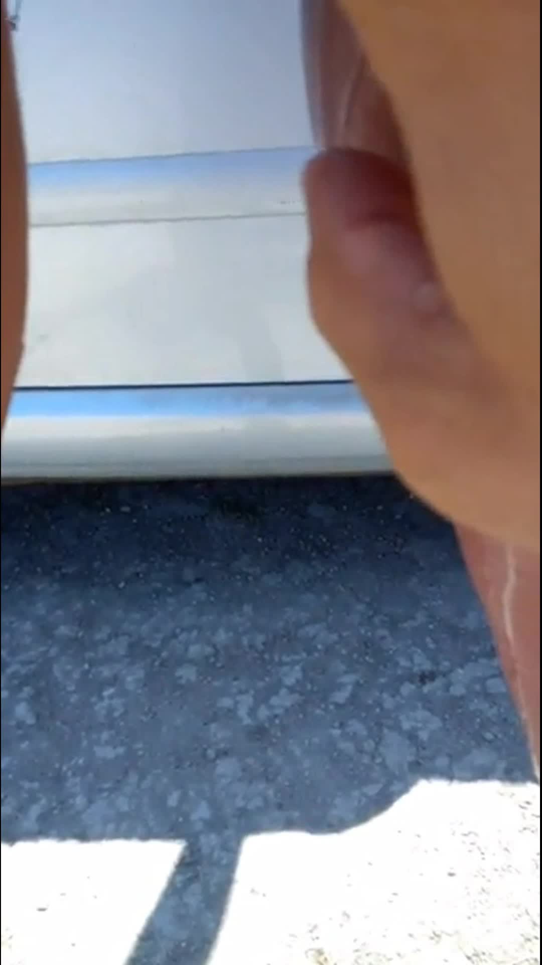 Возбужденная после пляжа писька пускает струйки по ногам возле машины.