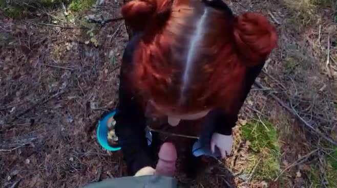 Девушка собирала в лесу грибы и встретилась с лесником. Пришлось ему отсосать за грибочки.