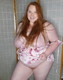 Хорошенькая рыжеволосая толстушка показывает себя.