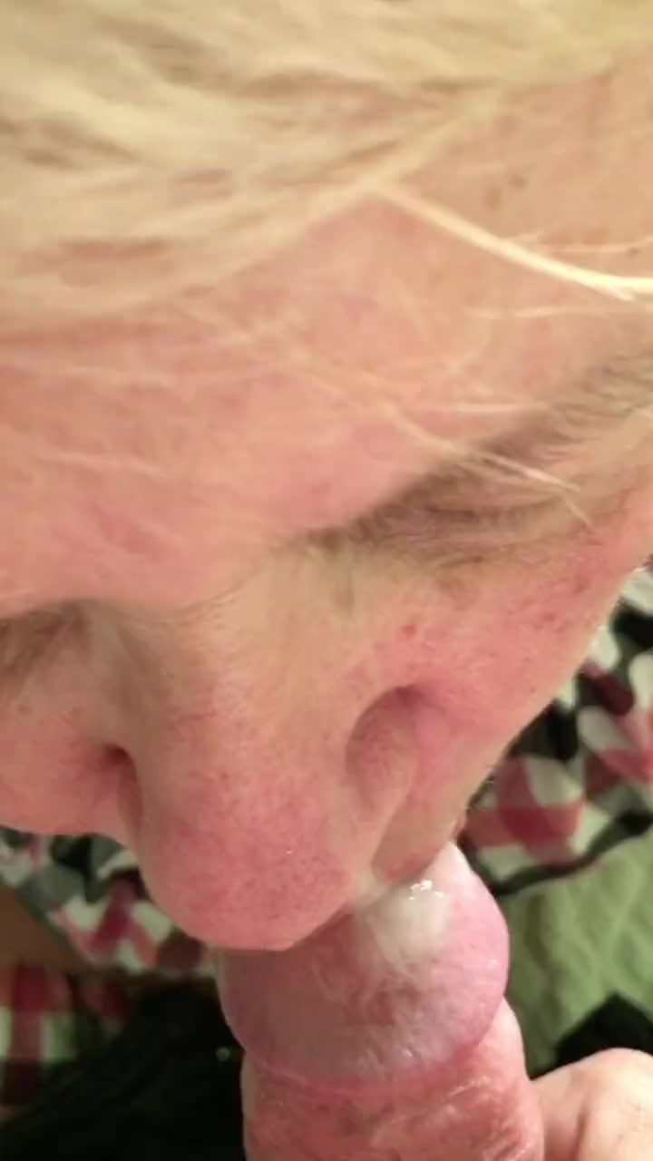 Старушка делает минет молодому парню и он кончает ей в ротик!