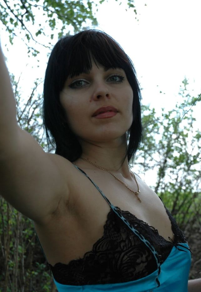 Рита в образе непослушной шлюшки делает селфи и позирует в березовой роще