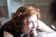 Рыжая наслаждается тем, что делает своему парню минет и глотает весь его хуй.