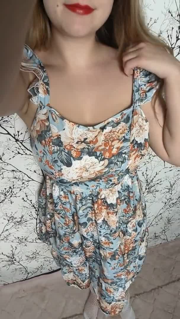 Сочная девочка в сарафане оголила титьки и показала писечку
