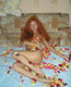 Красивая стройная женщина с длинными рыжими волосами демонстрирует свое стройное тело и уникальные способности.