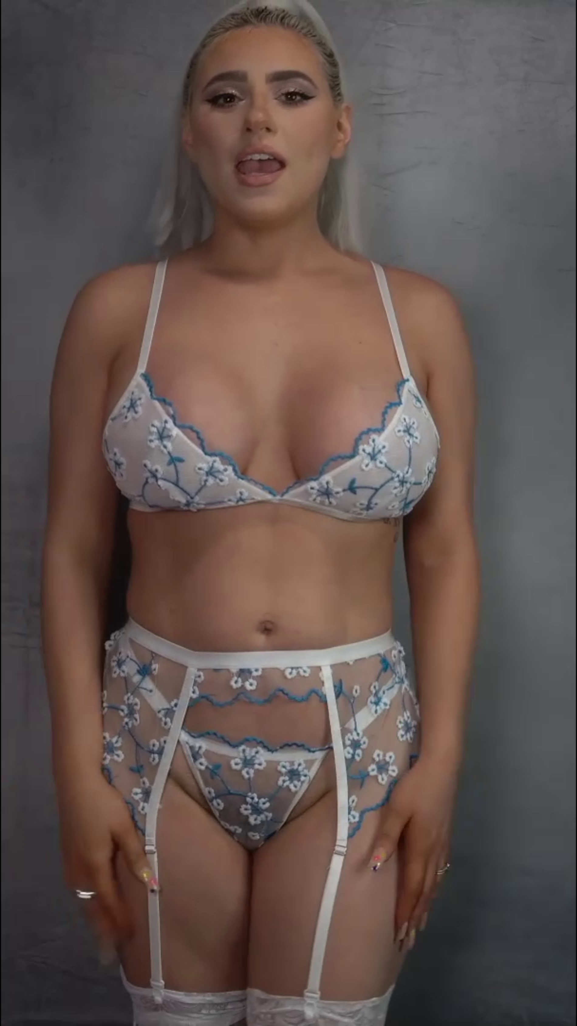 Девушка показывает красивое бельё, ведь оно многим очень нравится.