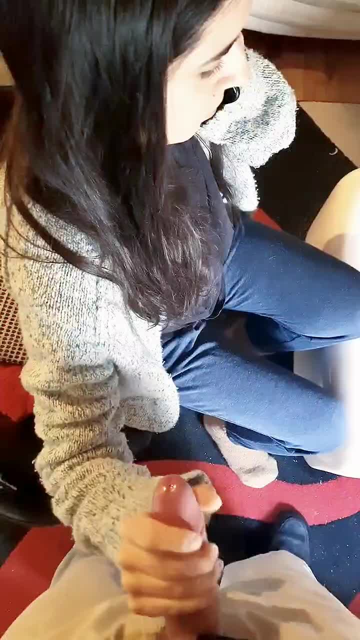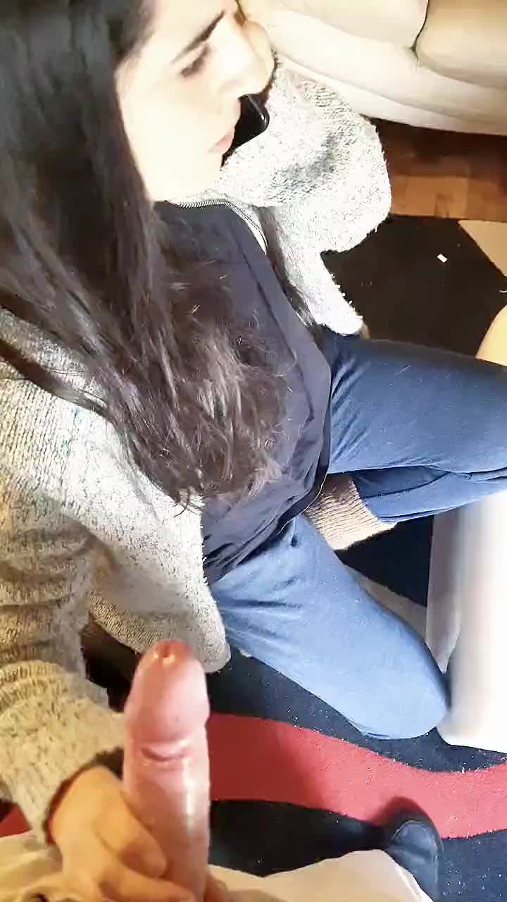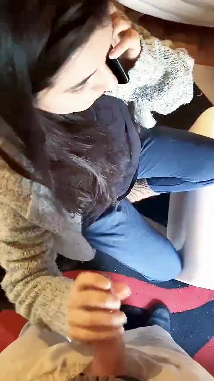 Деваха немочка разговаривает по телефону и посасывает членик дружку. А тот выдрочил на лицо подружке!))