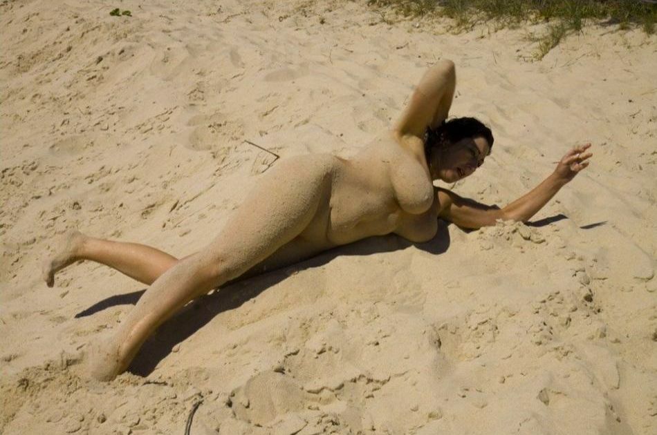 Обнаженная в песке. Это смотрится красиво,на солнечном пляже.