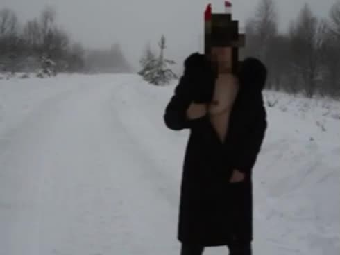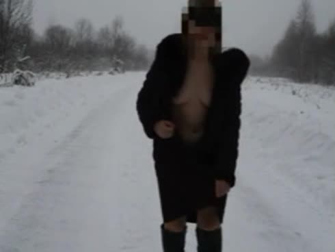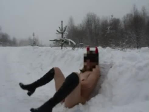Девушке вдруг стало жарко и решила покататься голой попкой по снегу