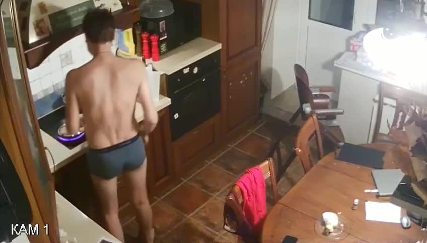 Семейная пара по быстрому потрахались на кухне пока дети не мешают!