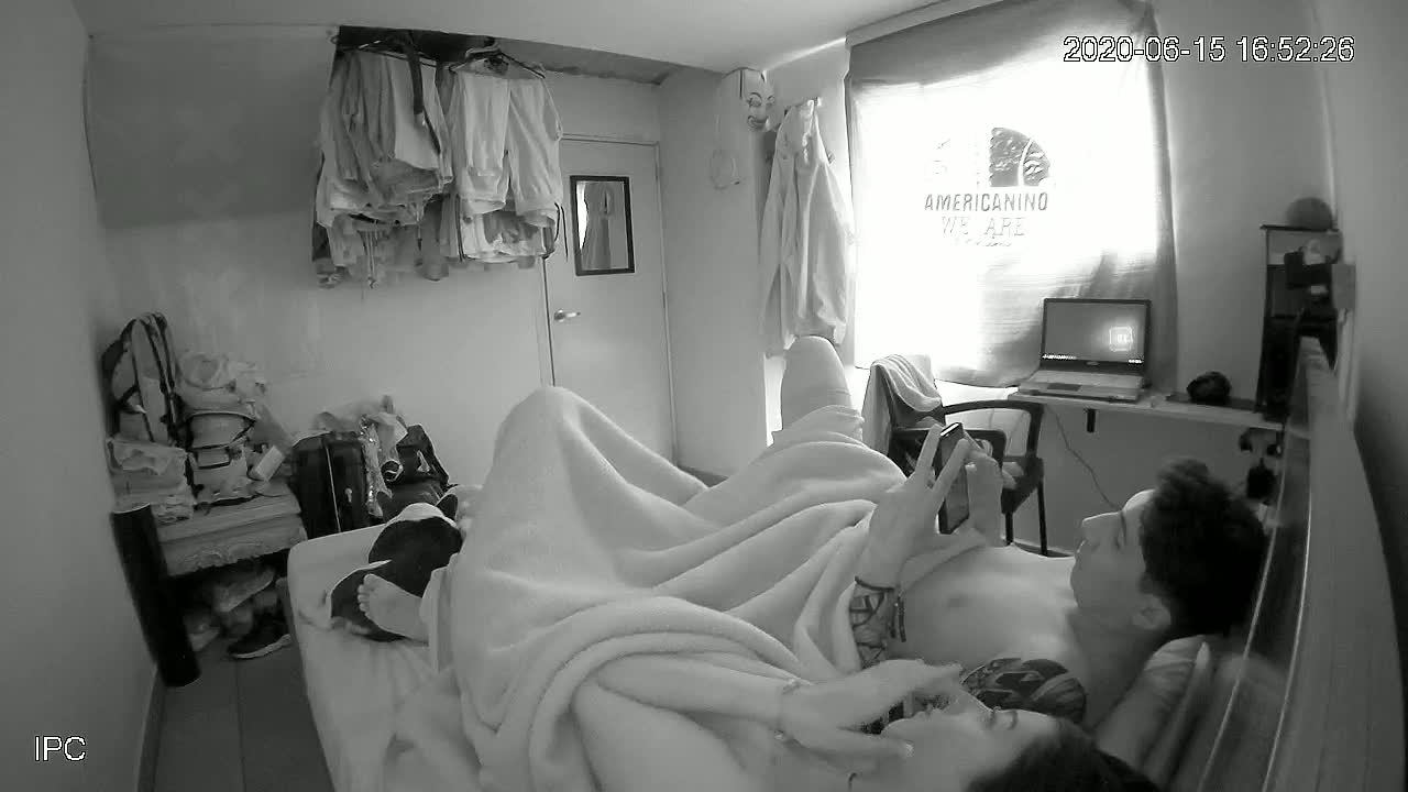 Парочка лежит в постели и втыкают в телефоны. Решили перепихнуться. Девка встала на колени, парень вставил свой перец, кончил и вытер ей писюху.