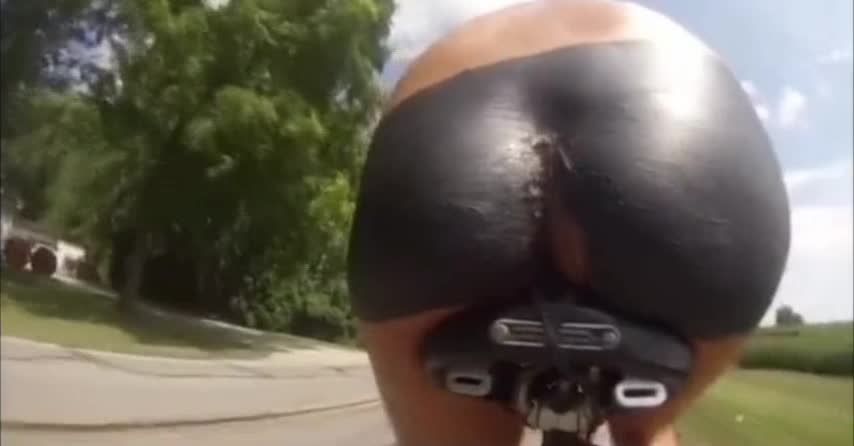 Девушка нарисовала на попке шортики и проехалась на велосипеде и большим дилдо по дороге.