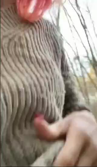 Иностранная сучка вышла из машины, приспустила штаны, задрала свитерок, и это зимой!, и подрочила на камеру!