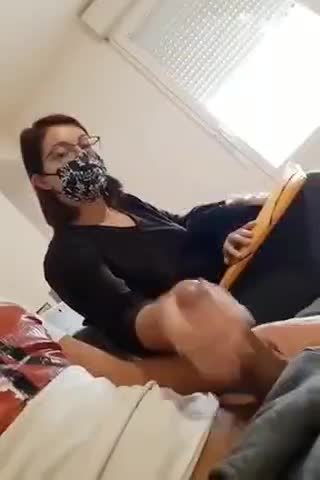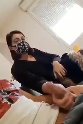 Парень сидя в приёмной, вытащил свой член и стал подрачивать. Девка смотрела, смотрела и взялась подрочить ему. Что и сделала до финала.