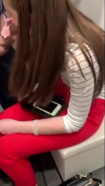 Уединились с девушкой в примерочной кабинке, где она по-тихому отсосала член