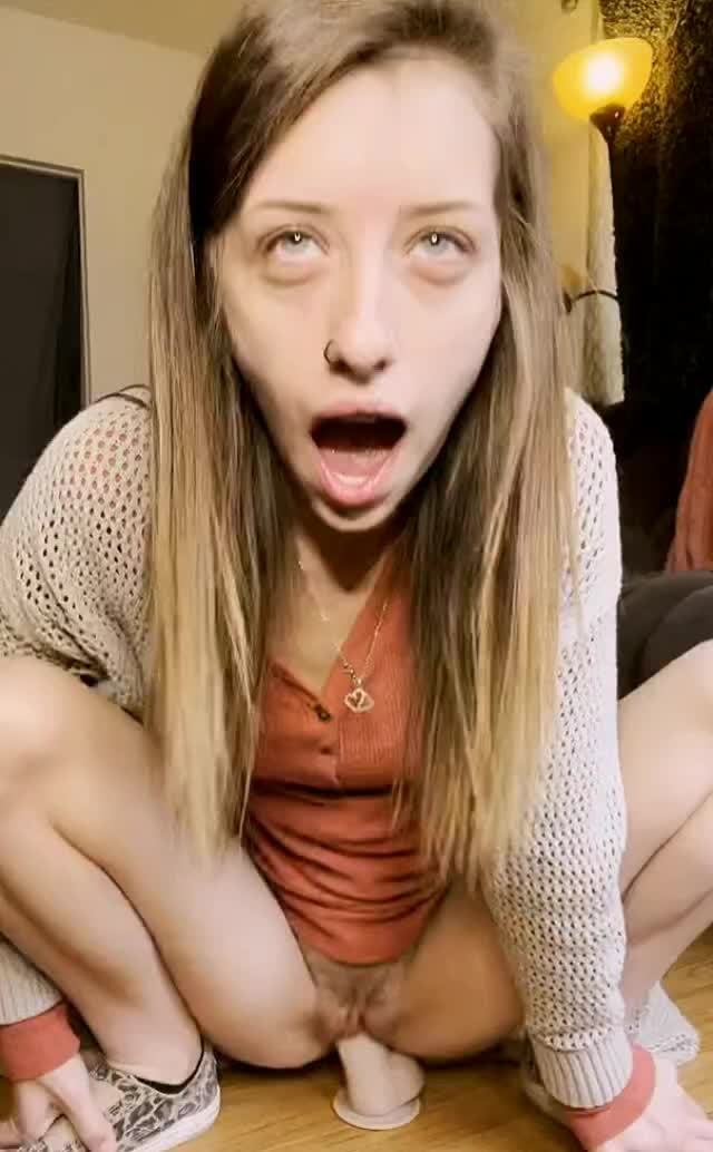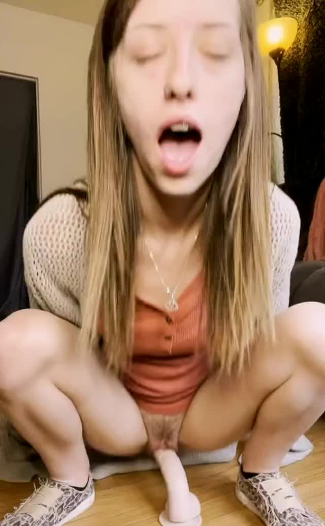 Молодая девка показывает как она умеет скакать на членах. Показывает на дилдаке.