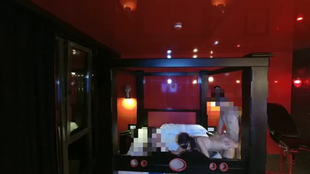 Нижнюю сучку прут вдвоем в тематическом отеле, на переднем плане колодки.