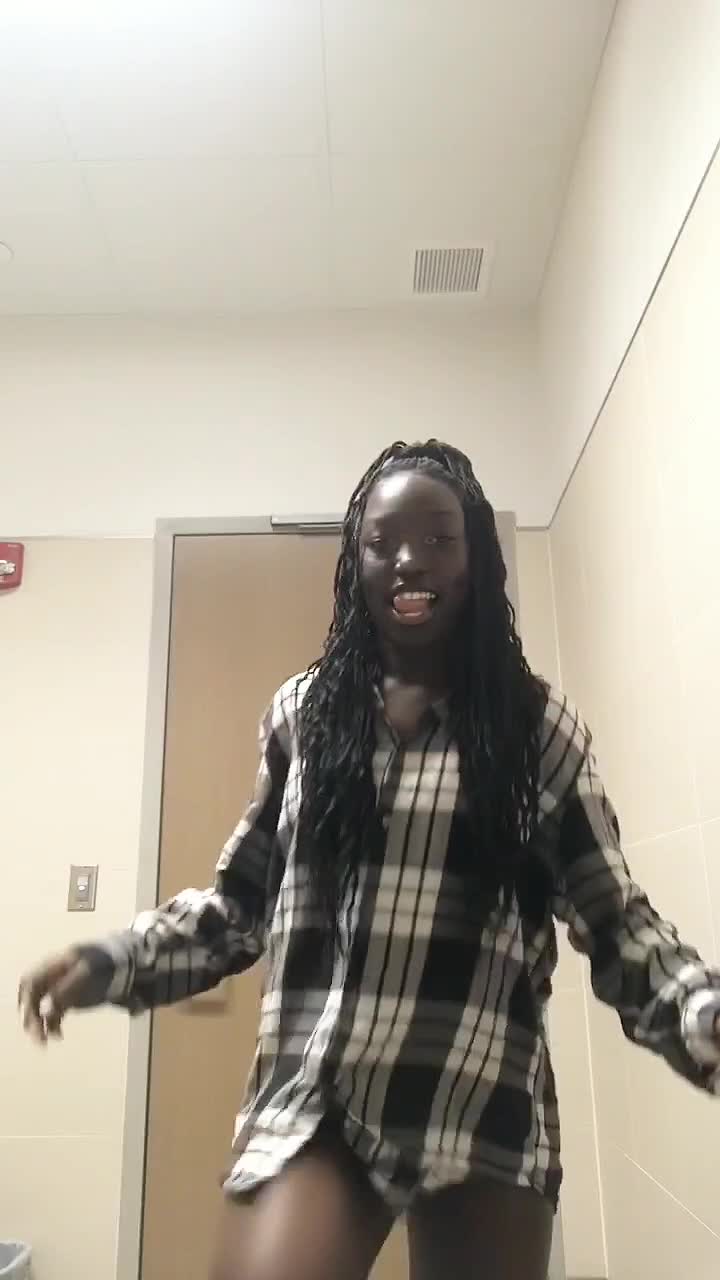 Очень чёрная девка зашла в туалет, сняла штаны, села на пол и потерла свою розовую писюху!
