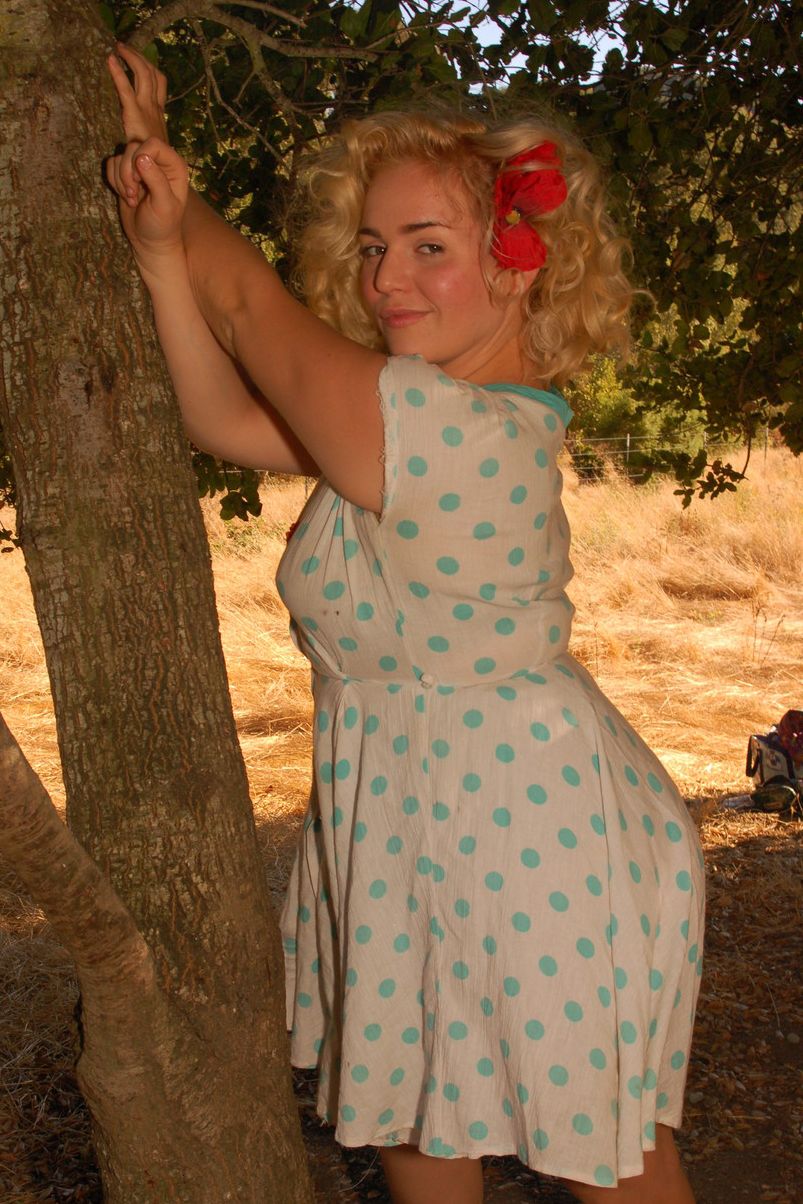 Белявка Полли раздевается в саду раздвигая свой кустик любви