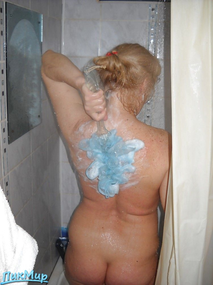 Машка купаеться натерает свою пизду и сиськи мачалкой
