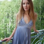 Милая Аделина показывает лысую киску под юбкой перед тем, как позировать обнаженной