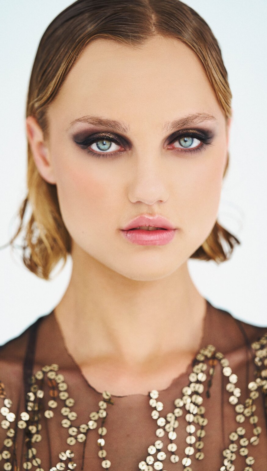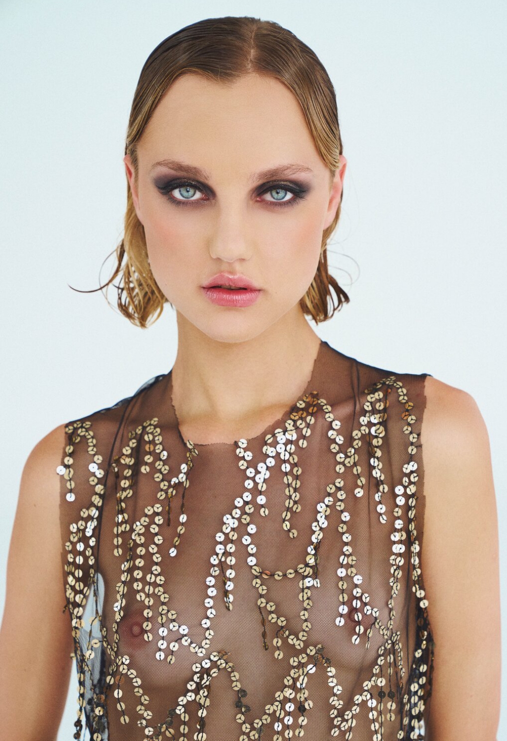 Красивая модель, в одежде и без неё. Маленькая грудь добавляет шарма и индивидуальности. Только очень серьезная, как на совещании..