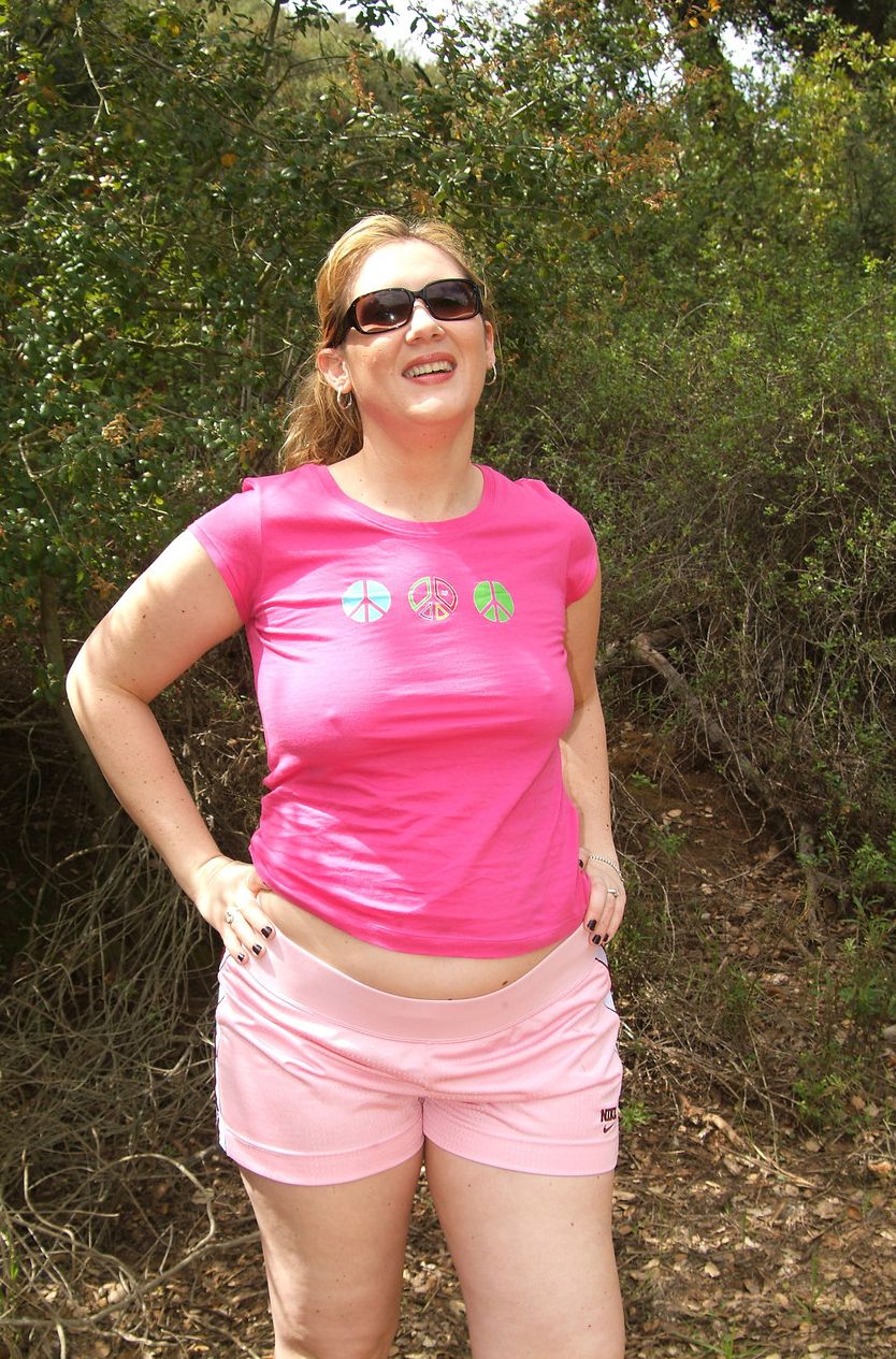 Пухлая Наташа раздевается и показывает свои большие сиськи в кустах