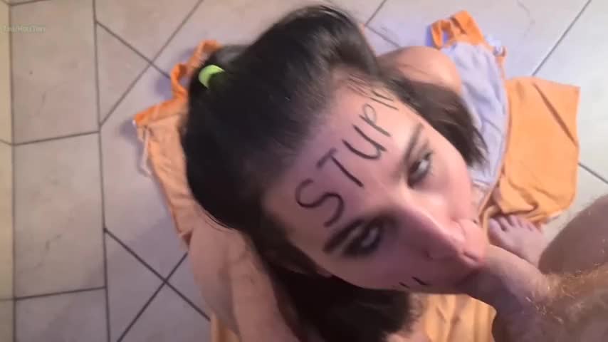 Ей пишут на лице, грубо вафлят, дают пощечины, ссут в рот и вытирают пол ее волосами