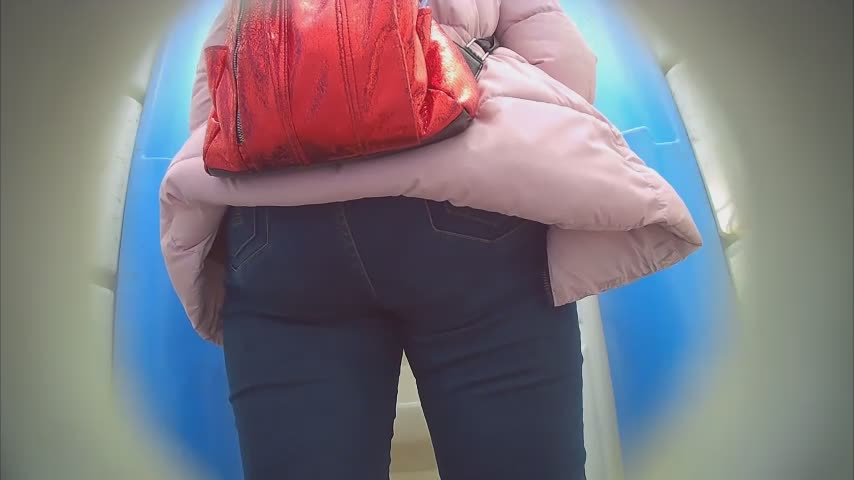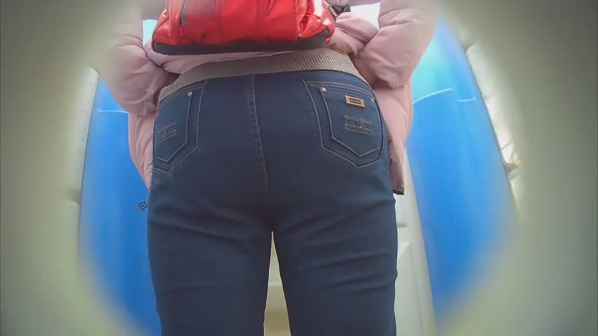 Женщина с шикарной жопой и трусами в сеточку,писает в биотуалете со скрытой камерой.