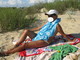 Прикольно показывает писю под парео, а затем снимает его и сиськи демонстрирует