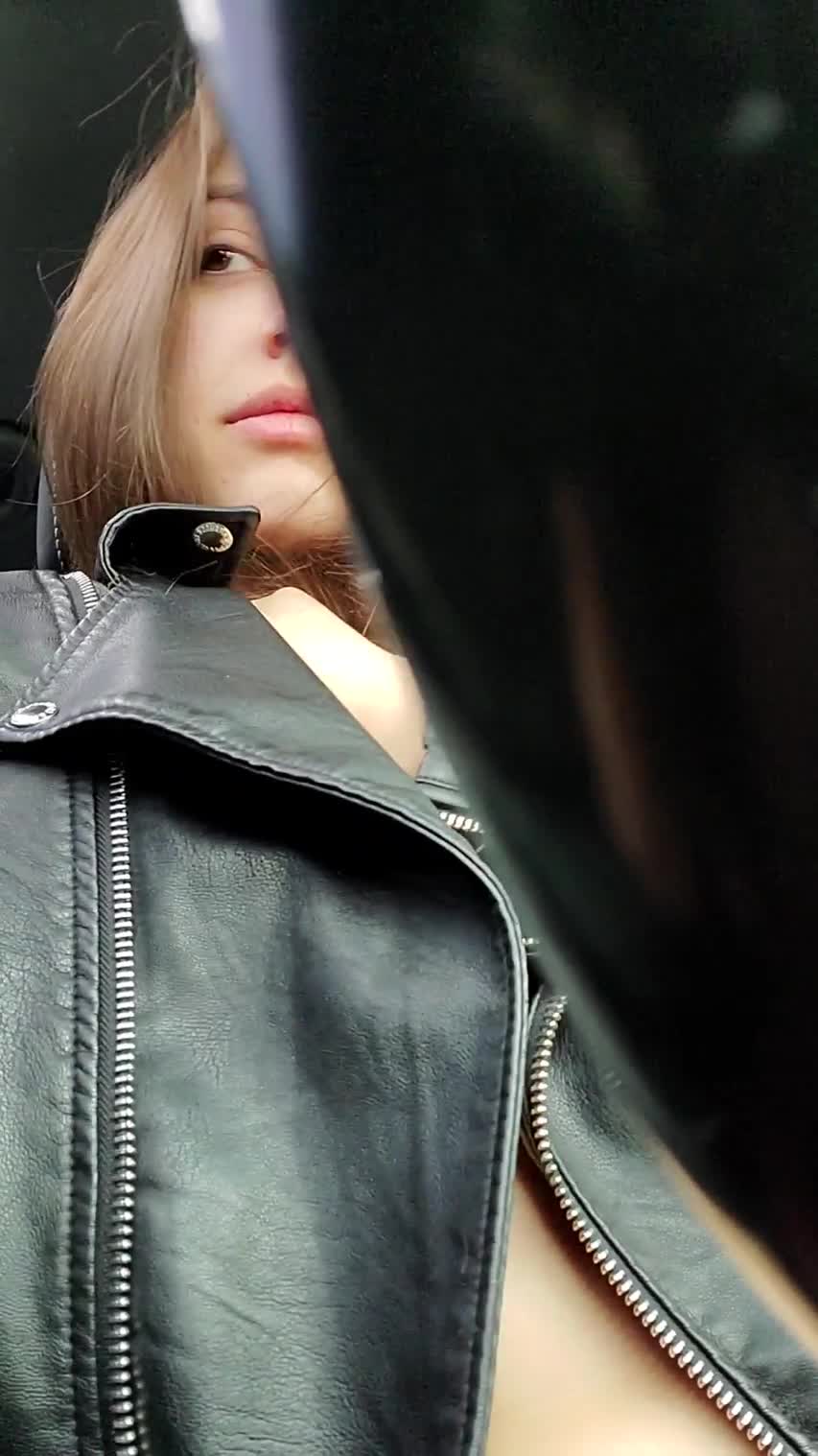 Девушка стало скучно в машине и она решила поснимать свою грудь на камеру телефона.