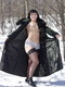 Красивая брюнетка Елена голая в зимнем пейзаже