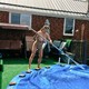 Бабуля то хозяйственная. Убралась голой. Ополоснулась в летнем душе. И загорать. И всё нагишом. На стирке,экономит.