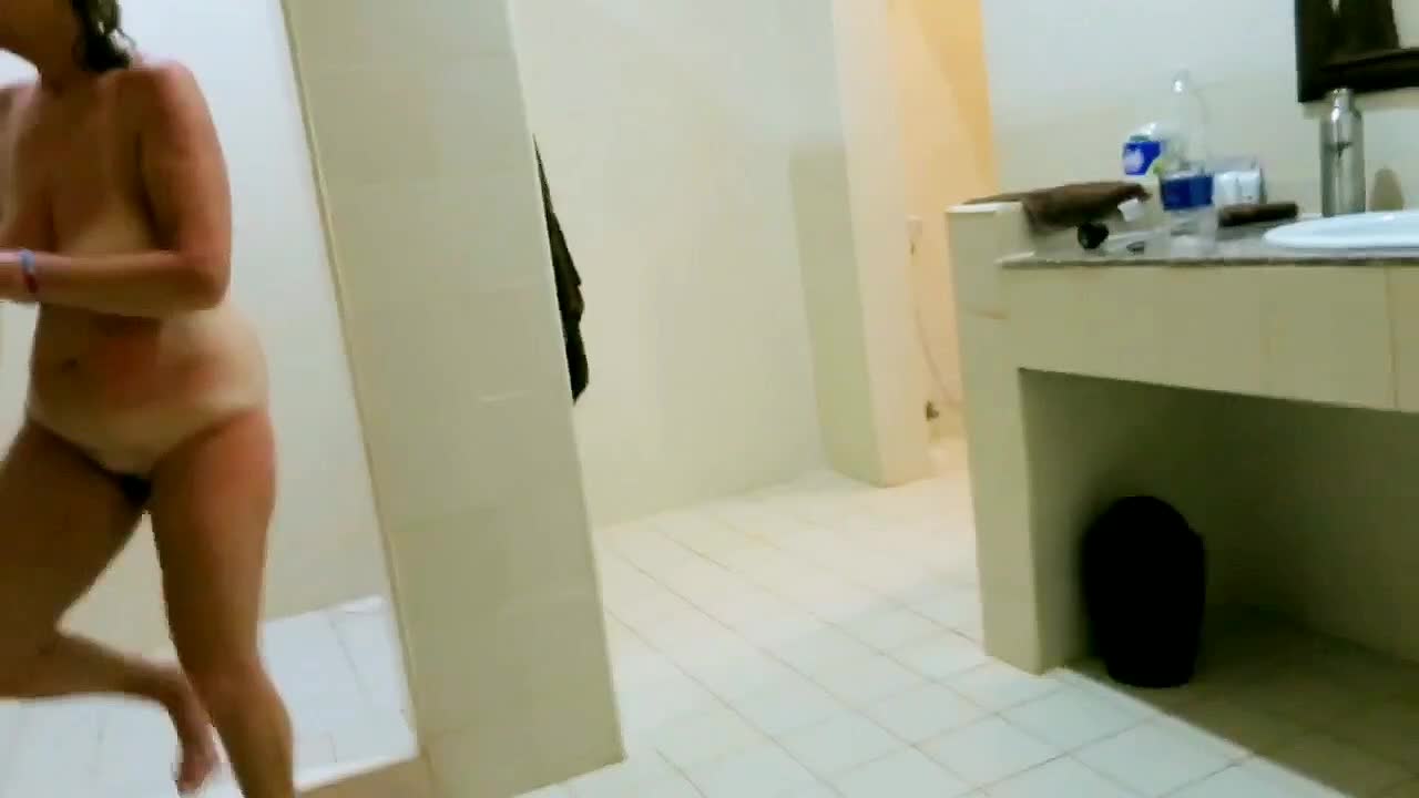 Муж снимает как его загорелая жена моется в душе.