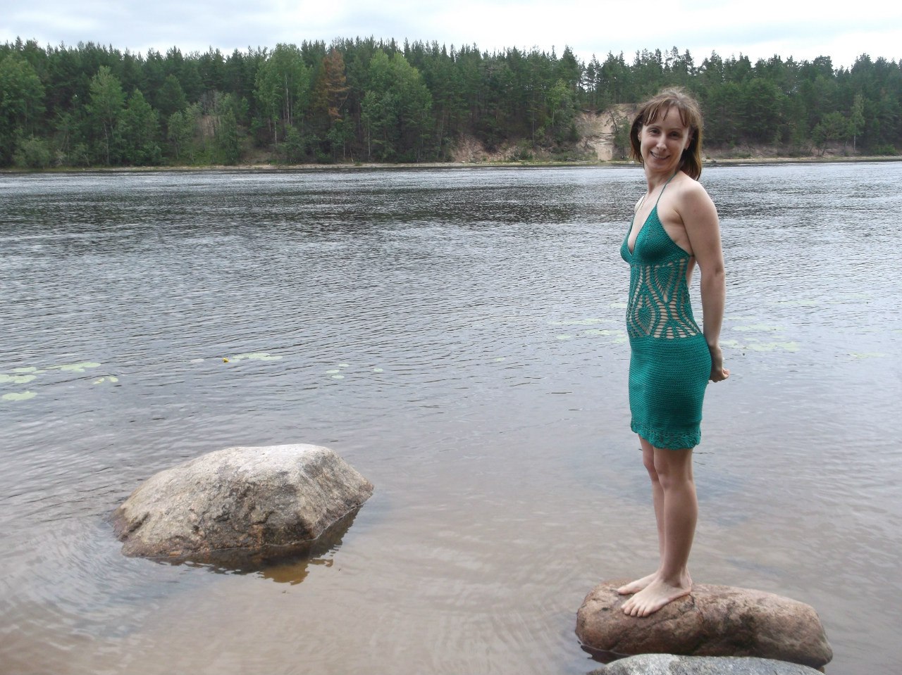 Вязанные платья супер! На голове тело смотрятся отлично, пикантно! Она просто молодец! У жены было подобное, к сожалению порвалось давно, и похожего не нашли
