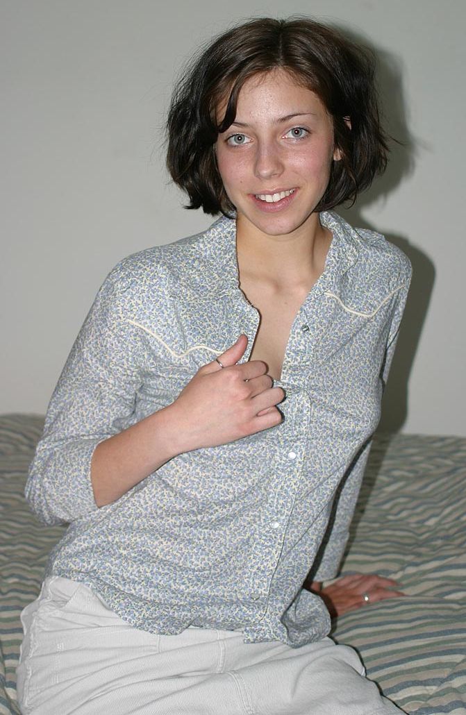 Нико раздвигает пальцами свою подстриженную киску на кровати