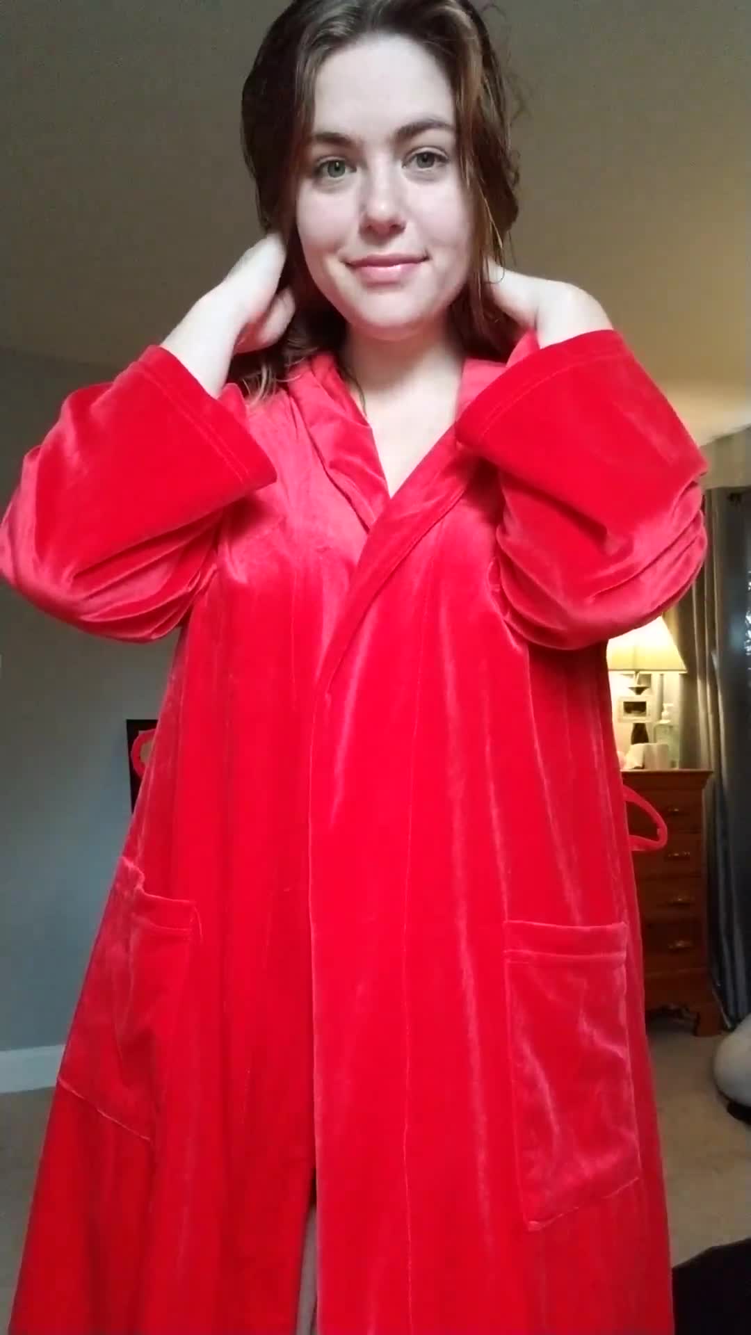 Как мило она умеет титьками халатик распахивать