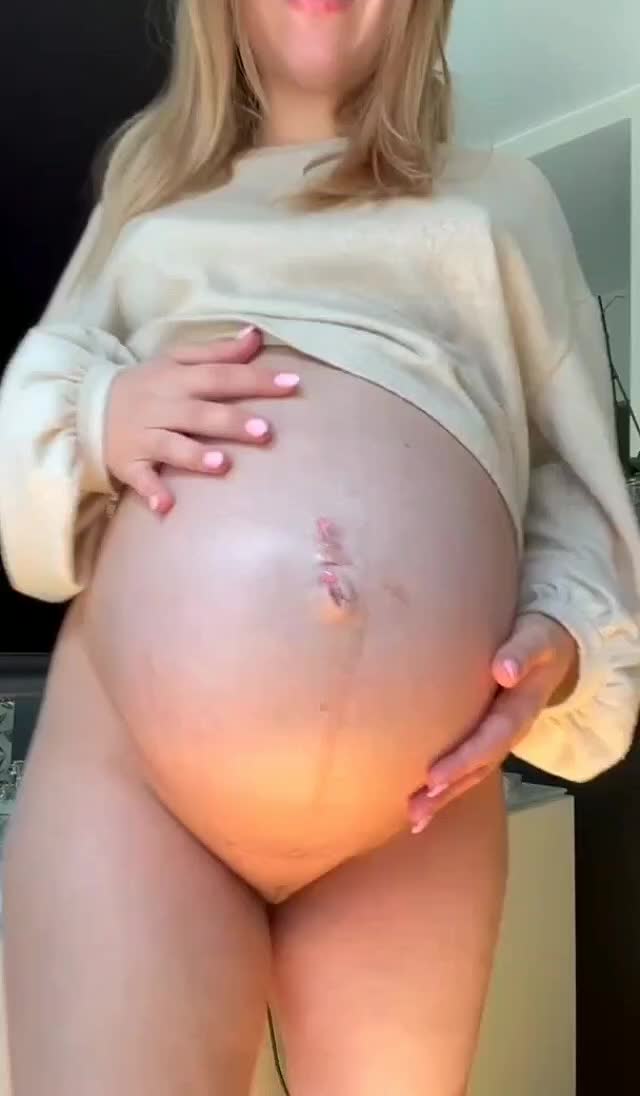 Беремка блондинка показывает свое роскошное тело.