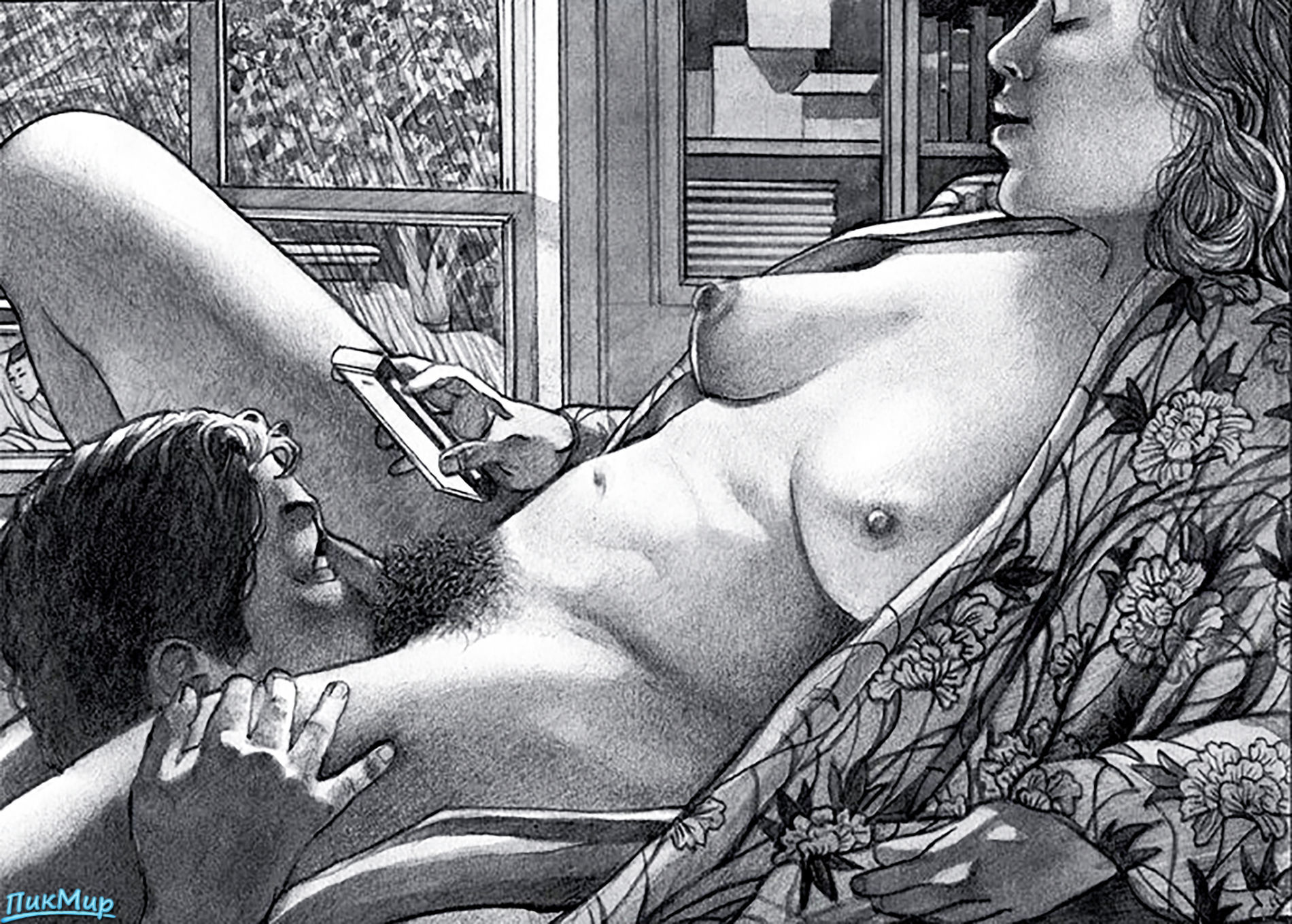 Ситуация, переданная художником, не менее возбудительна, чем фото.