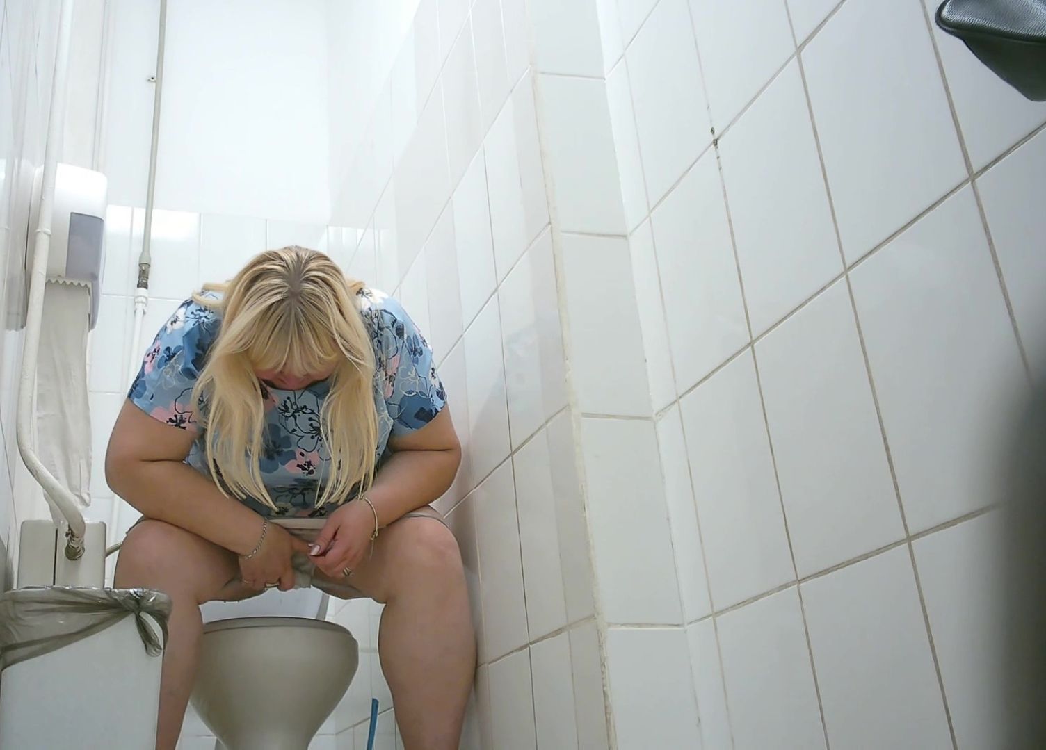 Очень пышная блондиночка заскочила по-быстрому в дамскую комнату и... Попалась на скрытую камеру! Засветила свой сдобный пирожок, пышные телеса, стала звездой сети из разряда Девочки пи-пи! Приятного всем просмотра.