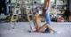 Красивый чувак с большим членом лижет писю стройной блондинке, она делает ему минет, они трахаются на лестнице, а в конце он кончает ей на лицо.