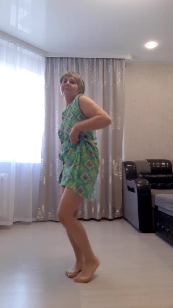 Видосик в подарок любимому зрелой дамочки в домашнем халатике, которая в танце от него очень быстро избавилась. Любимому сто процентов понравилось