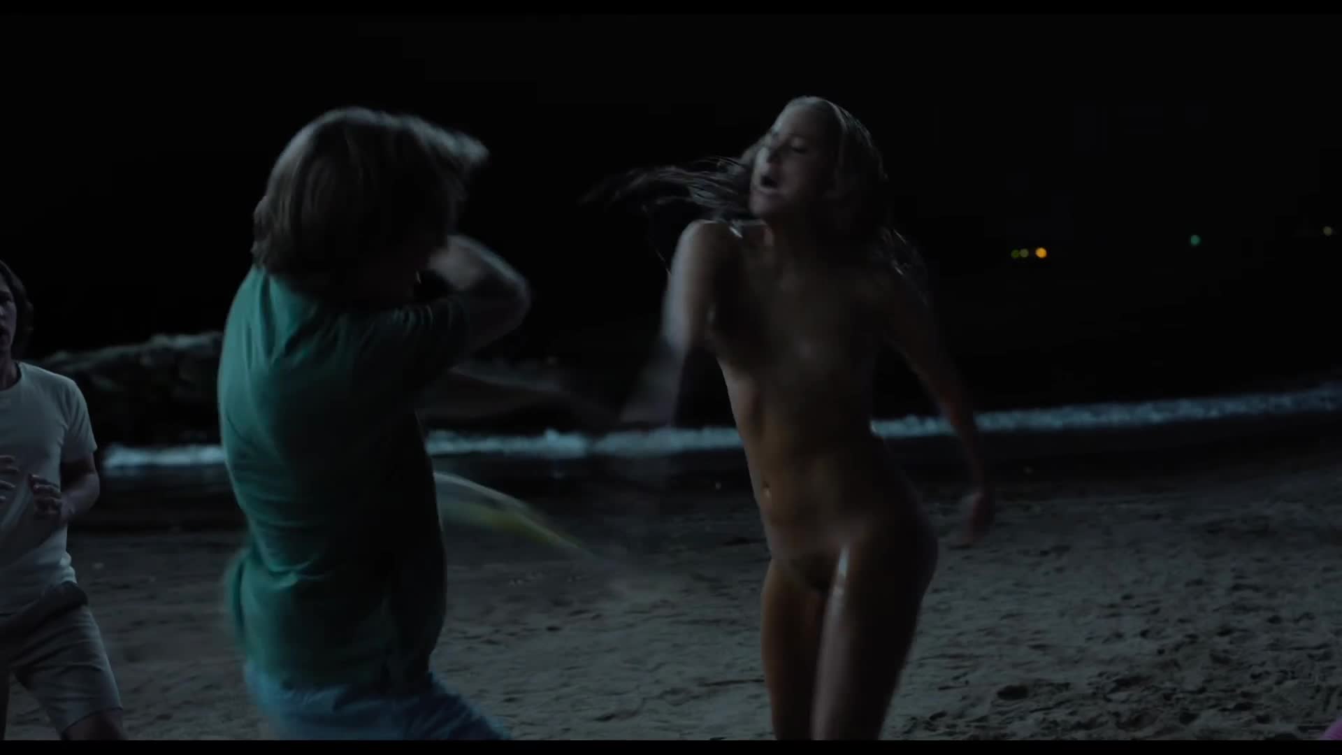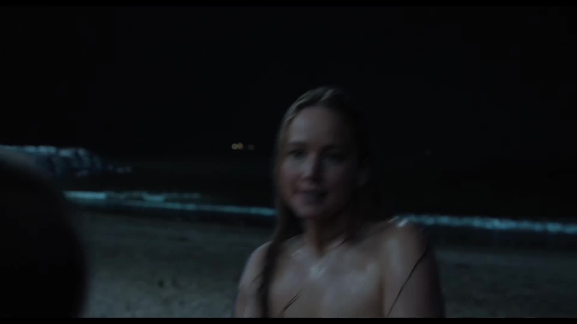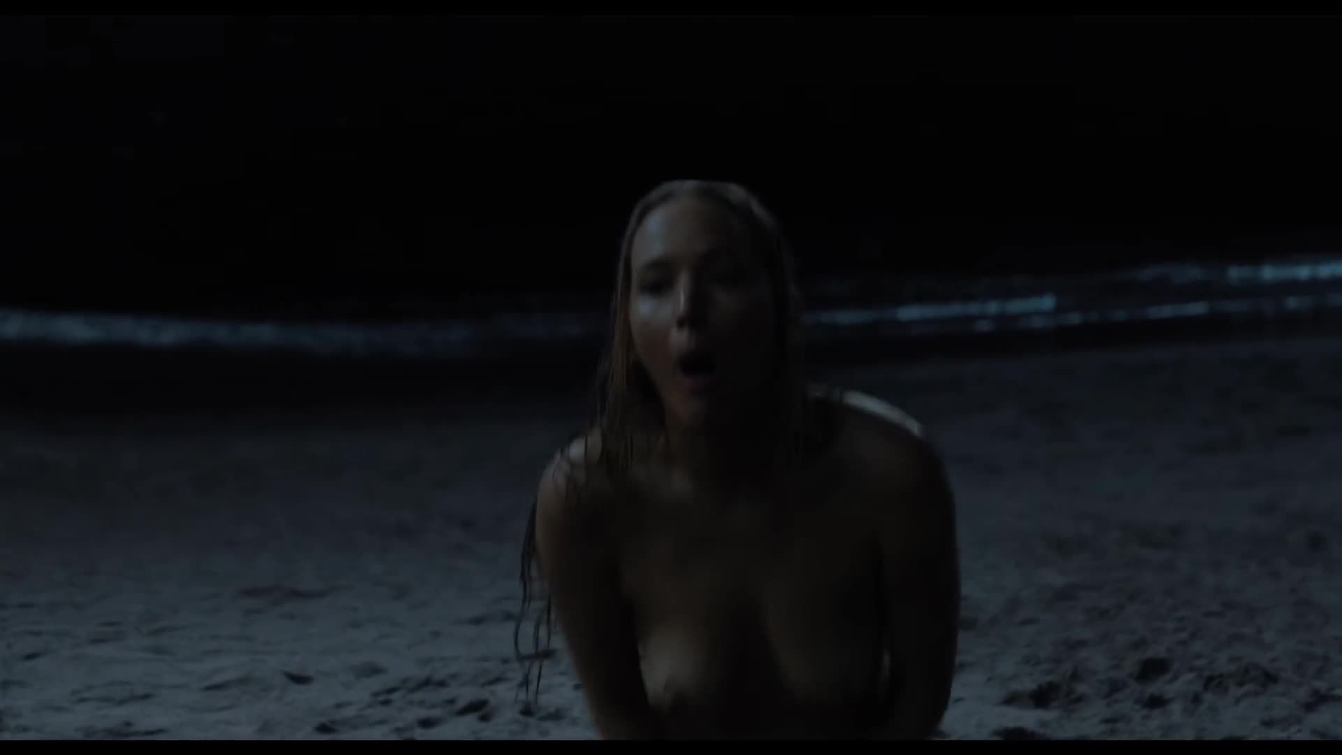 небольшой момент из фильма "Без обид" в котором полностью обнаженная тридцатитрехлетняя актриса Дженнифер Лоуренс выходит из воды и борется с ворами своей одежды, показывая свои сиськи, киску и попку.