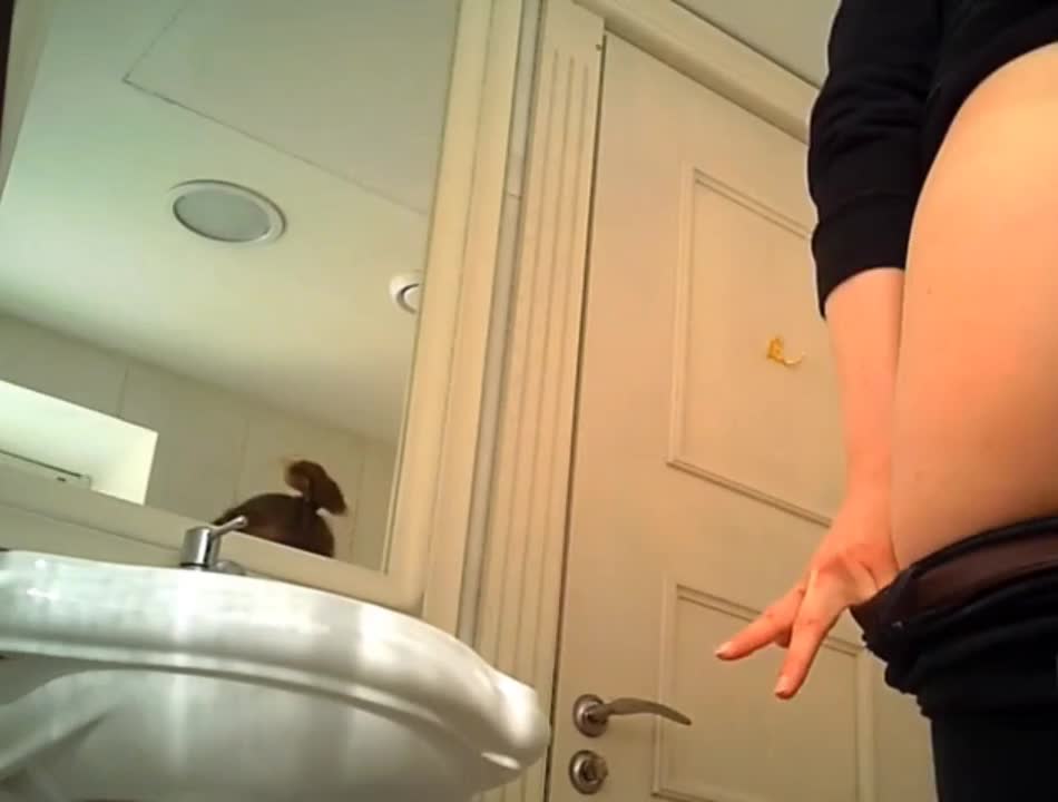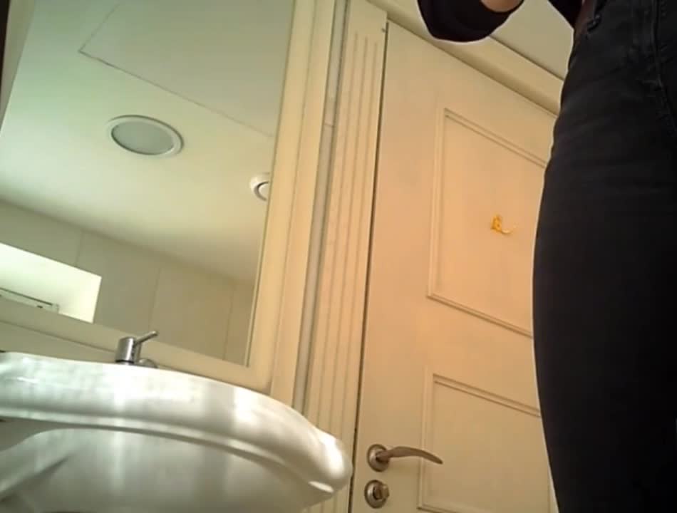 Девушка зашла в туалет,стянула джинсы и начала ссать широко растопырив свою письку.