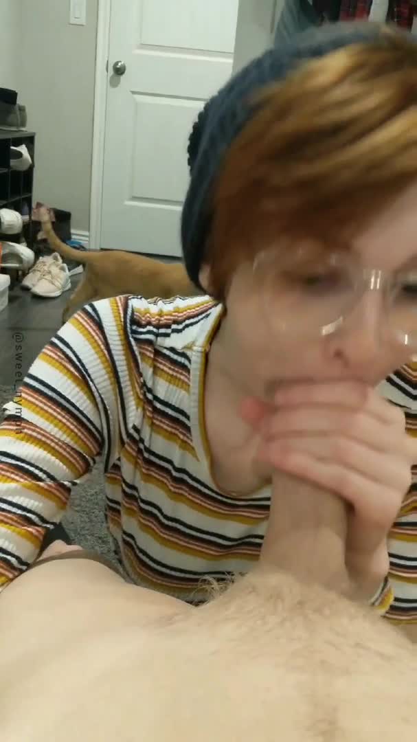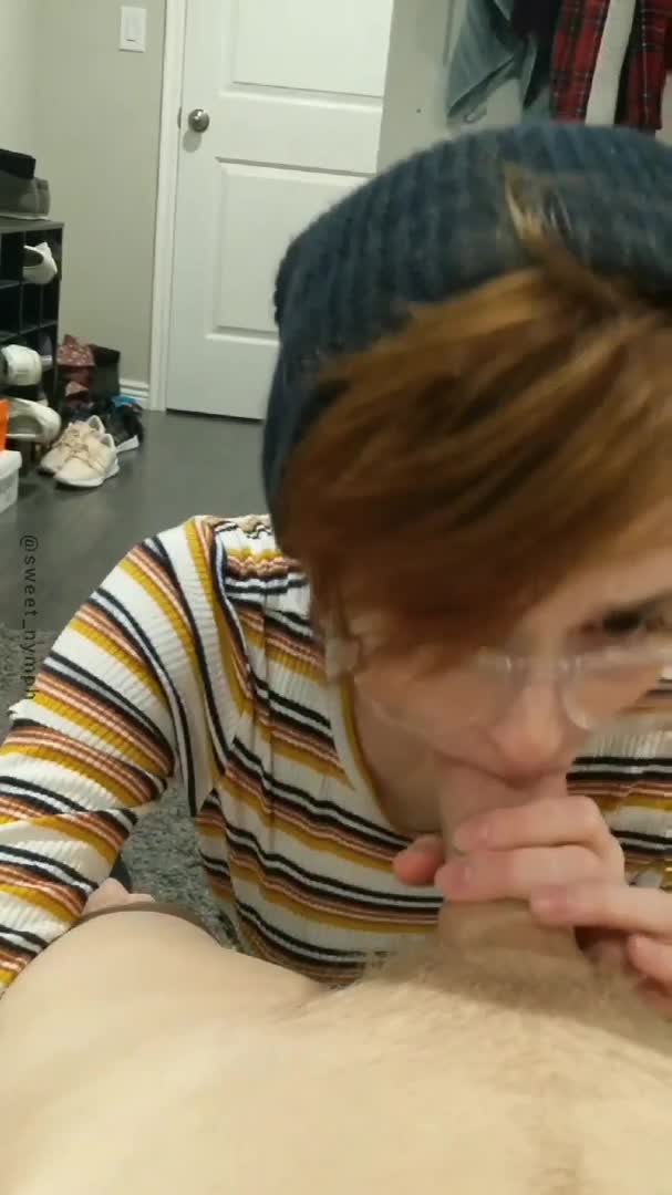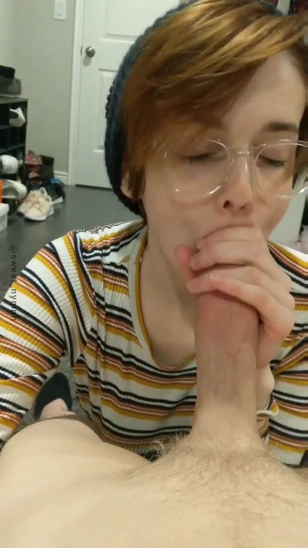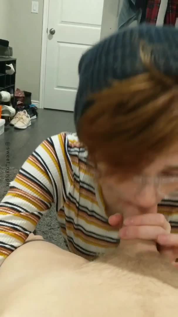 Девушка в очках деловито сосет член своего парня