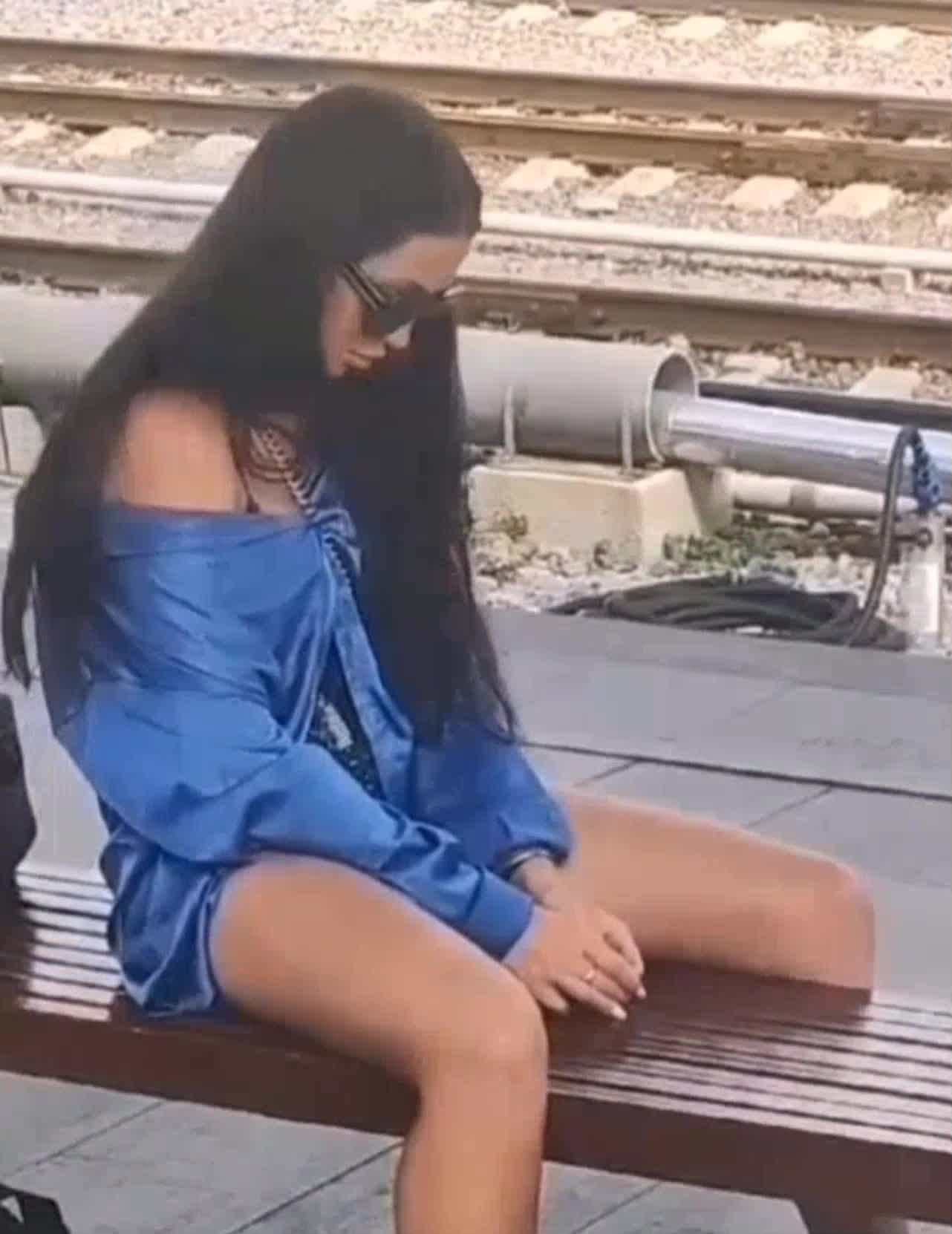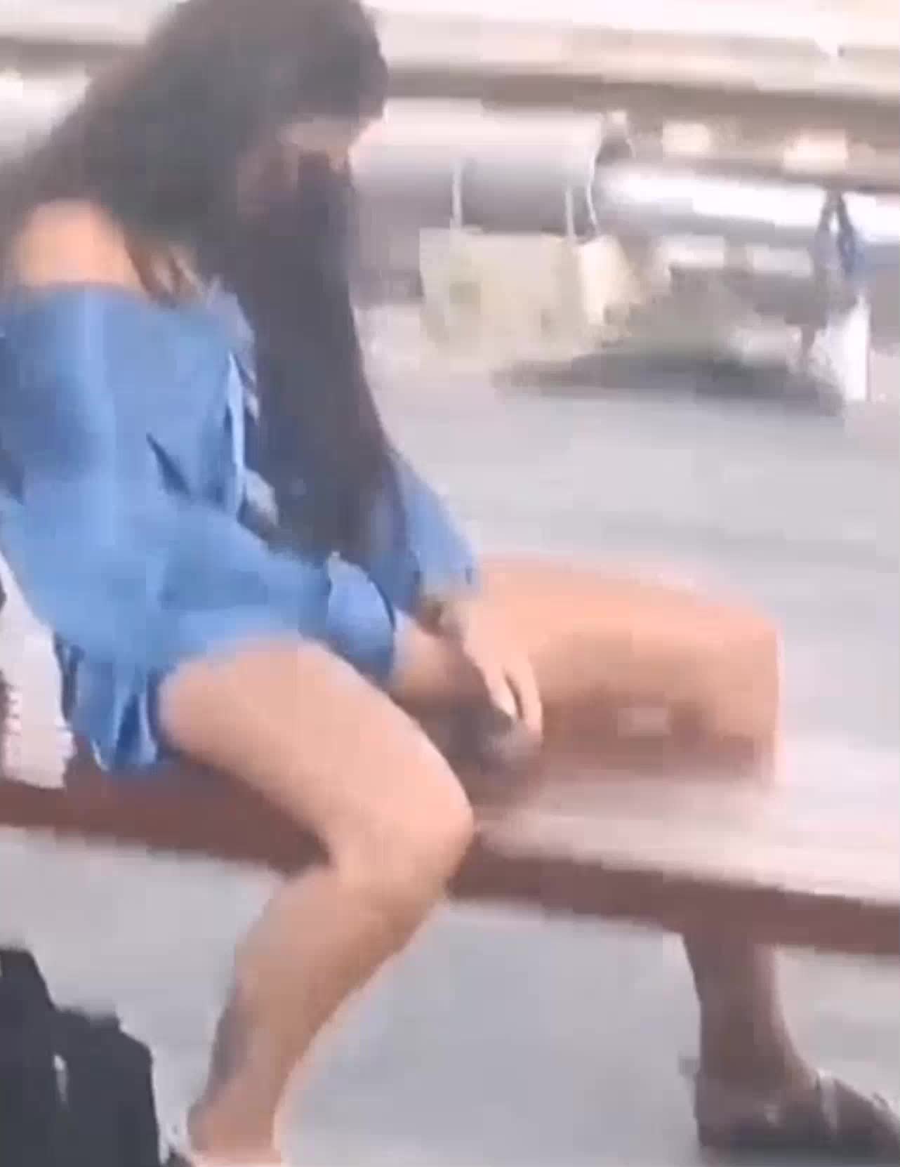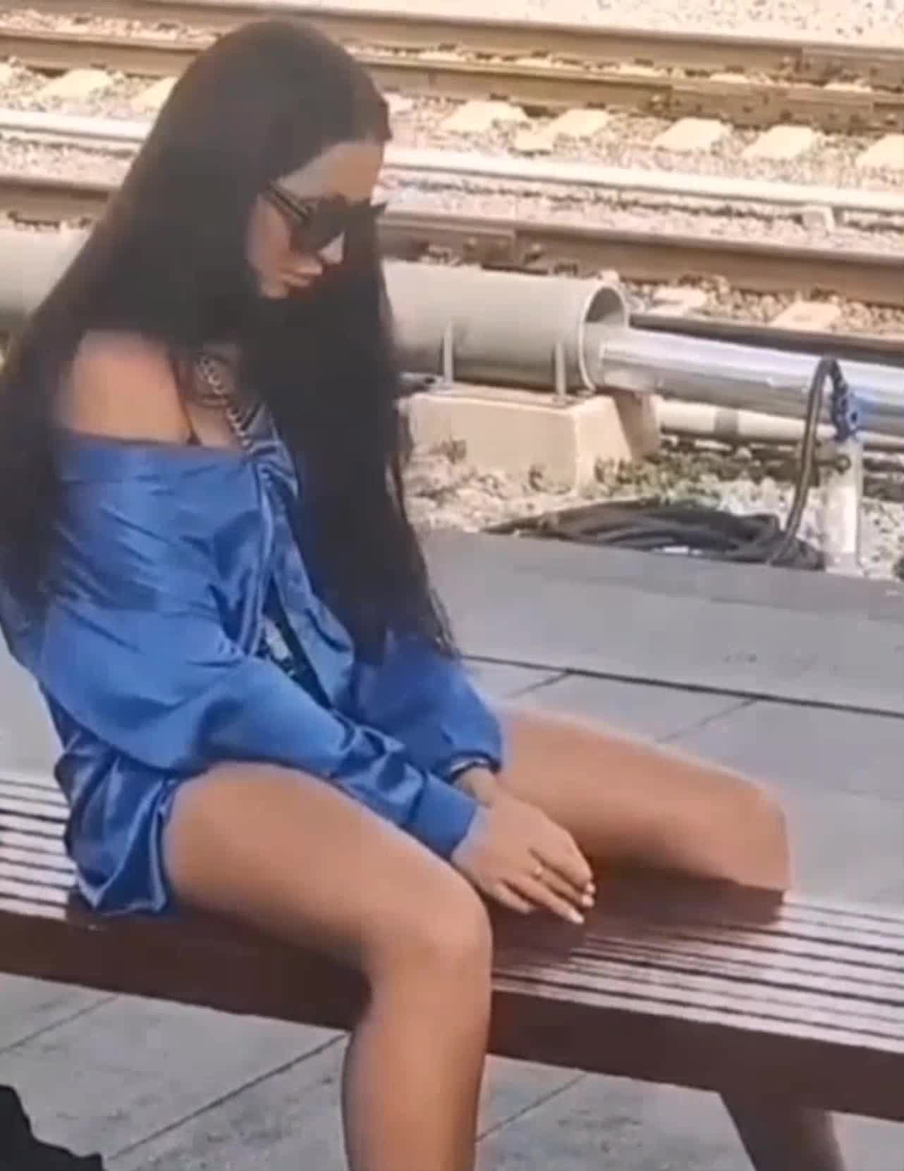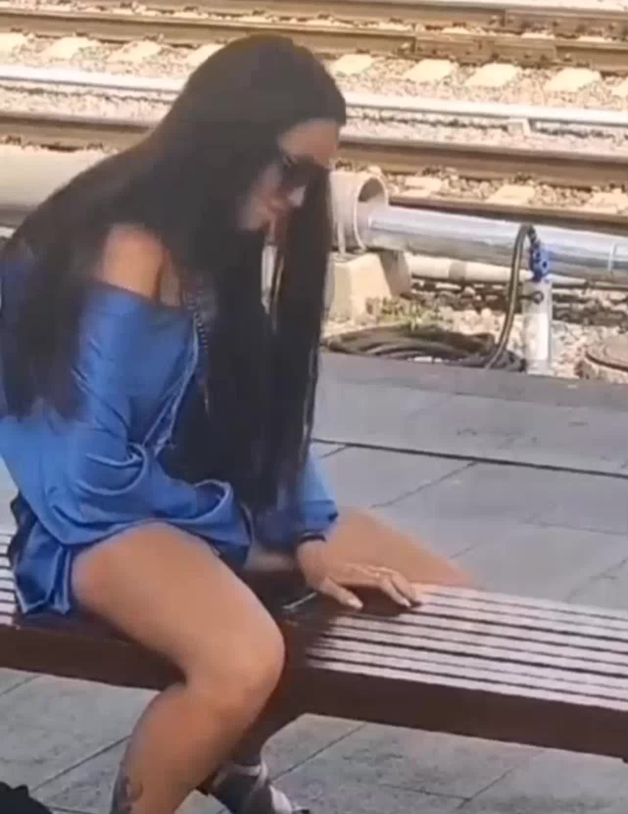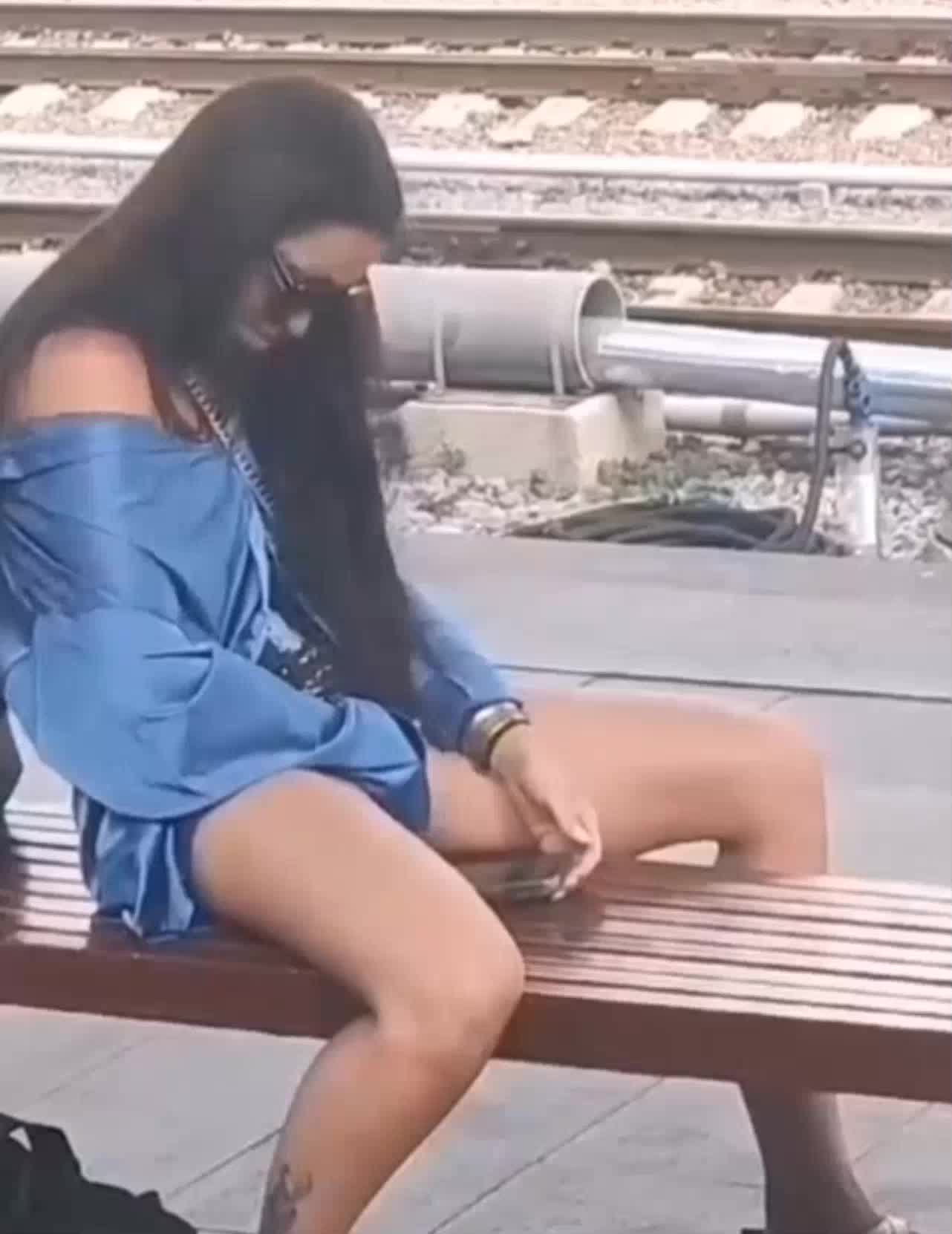 Пьяная девушка устала ждать поезд на остановке и решила немного подрочить.