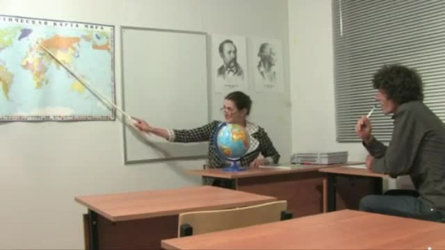 На дополнительном уроке по географии великовозрастный двоечник решил, что условное изображение континентов на плоскости, которое нарисовала училка больше похоже на сиськи, а не на глобус. Училка, возмущенная тупостью ученика тут же вывалила из кофточки свои сиськи и заявила, что они выглядят совсем иначе чем глобус. При этом, когда парень попросил потрогать их, она видимо для усиления эффекта разрешила. Ну а дальше как обычно, оба начали возбуждаться, обоим хотелось все более острых ощущений, когда центр внимания полностью сосредотачивается на женских и мужских гениталиях. После того как парень в продолжение урока мощно отъебал училку, она уже решила, что тему он усвоил хорошо и предложила на завтра продолжение занятий, на что получила радостное согласие. Надо полагать, что со временем этот парень хорошо усвоит не только географию, но и анатомию женского тела.