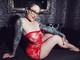 Роскошная брюнетка в красном , но уже с бритой пилоткой , ещё более желанна и сексуальна
