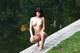 Стройная привлекательная брюнетка гуляет обнаженной по Москве