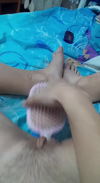 Девушка раздвинула ножки и трахает свою волосатую кичку ручкой от расчёски, кричит и постанывает.
