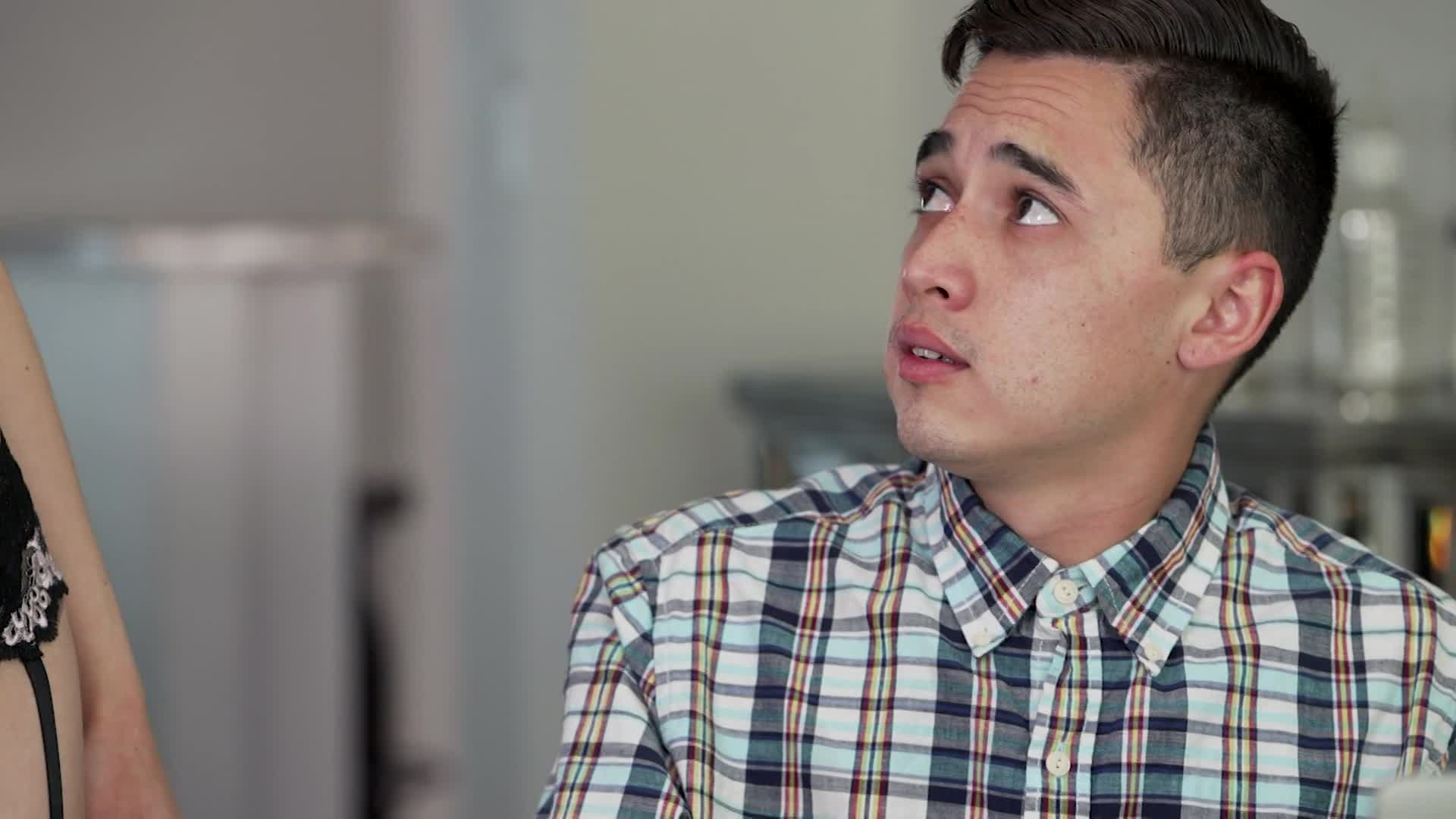 Ботан очень смущался, но не смог устоять перед такой соблазнительницей.